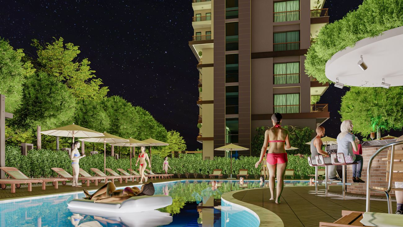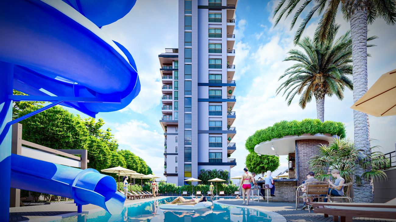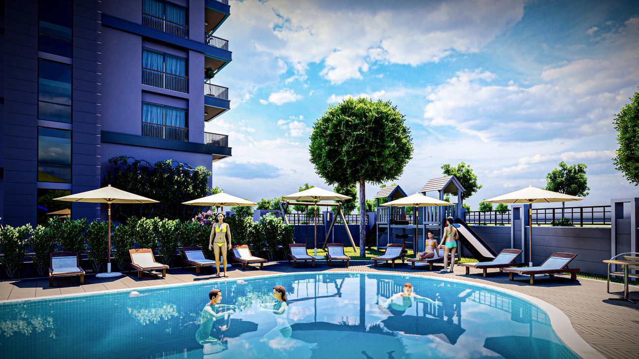 We offer you new penthouses and apartments by the sea in the Mahmutlar area, on favorable terms with 0% installments in a complex under construction with self-sufficient infrastructure. The residence consists of one apartment building, the adjacent territory is fenced and guarded. The internal infrastructure is diverse, all conditions have been created here to make your stay as pleasant as possible. The advantage of the project is its location: the residence is being built in the Mahmutlar area, just 550 meters from the sea, the road to the center of Alanya takes only 20 minutes. The Mahmutlar area is famous for its historical sights, picturesque nature, developed urban infrastructure and beautiful beaches. Location of the complex: