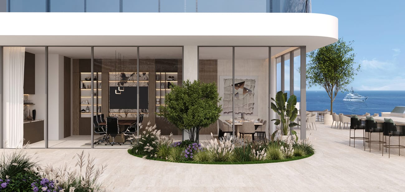 The grand double height lobby takes inspiration from its seaside location, with welcoming curves, rich gold and bronze metal works, luxurious marble details, and flowing design to welcome your arrival. The entrance boasts 24-hour concierge service and radiates refined luxury from the moment you arrive at the iconic tower.
