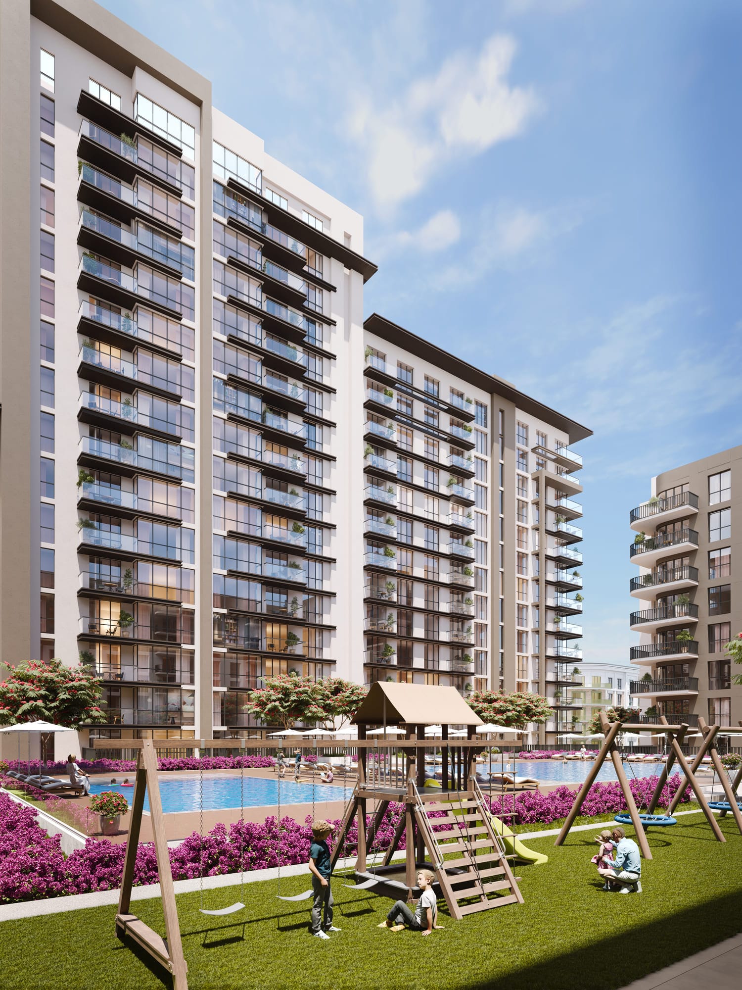 ARIA ON THE PARK stands as an architectural marvel, gracefully nestled amongst the main park, harmonizing urban living with breathtaking design.