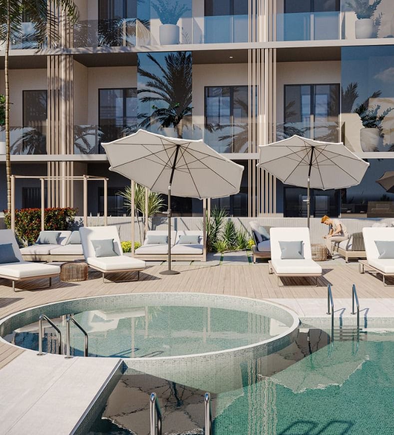Bali Residences is a modern architecture exemplified, combining cutting-edge technology with sleek and elegant aesthetics. The building’s unique design incor- porates clean lines and bold shapes, creating a striking visual impact that sets it apart from its surroundings.