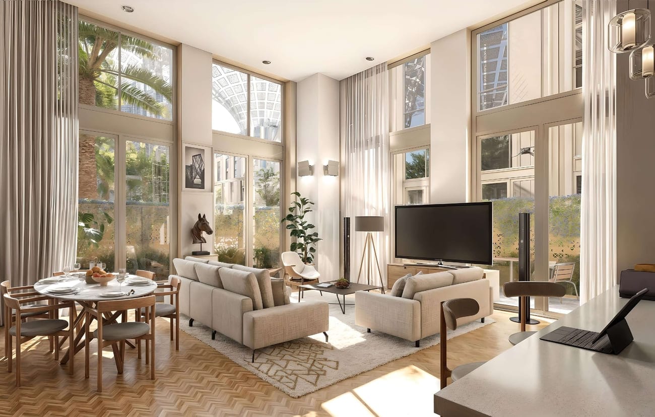 Al Waha Residences 2, 276 exceptional apartments and lofts flawlessly integrated into Expo City Dubai, the new centre of Dubai’s future. These prestige one- and two- bedroomed properties intelligently remodel Expo 2020’s country pavilions to provide spacious, upmarket residences at the heart of Expo City’s unique urban neighbourhood and thriving business hub. Each bright and contemporary home features floor-to-ceiling windows, beautifully shaded by the distinctive ‘Al Waha’ canopies to offer an unparalleled living environment among the city’s dappled courtyards and sikkas.