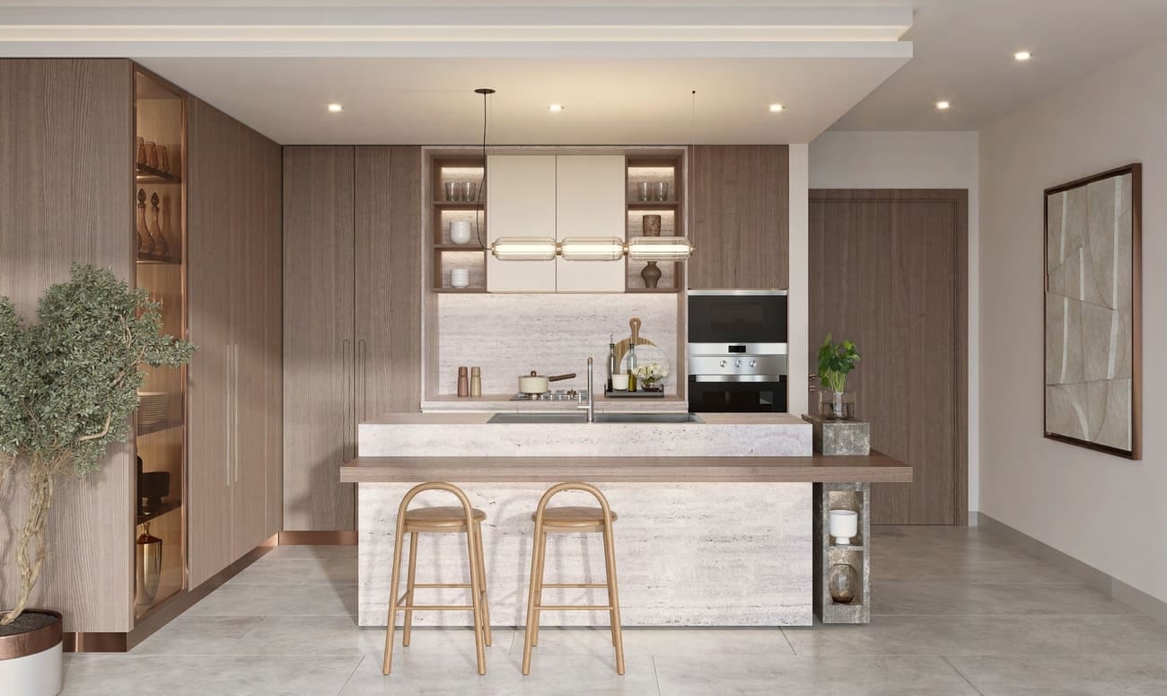 The kitchens at The Hillgate combine timeless design with modern convenience, featuring sleek finishes, ample storage, and a functional island that connects seamlessly with the living area. Each kitchen is thoughtfully crafted to be both beautiful and versatile, making it the heart of the home where cooking, entertaining, and daily routines come together effortlessly.