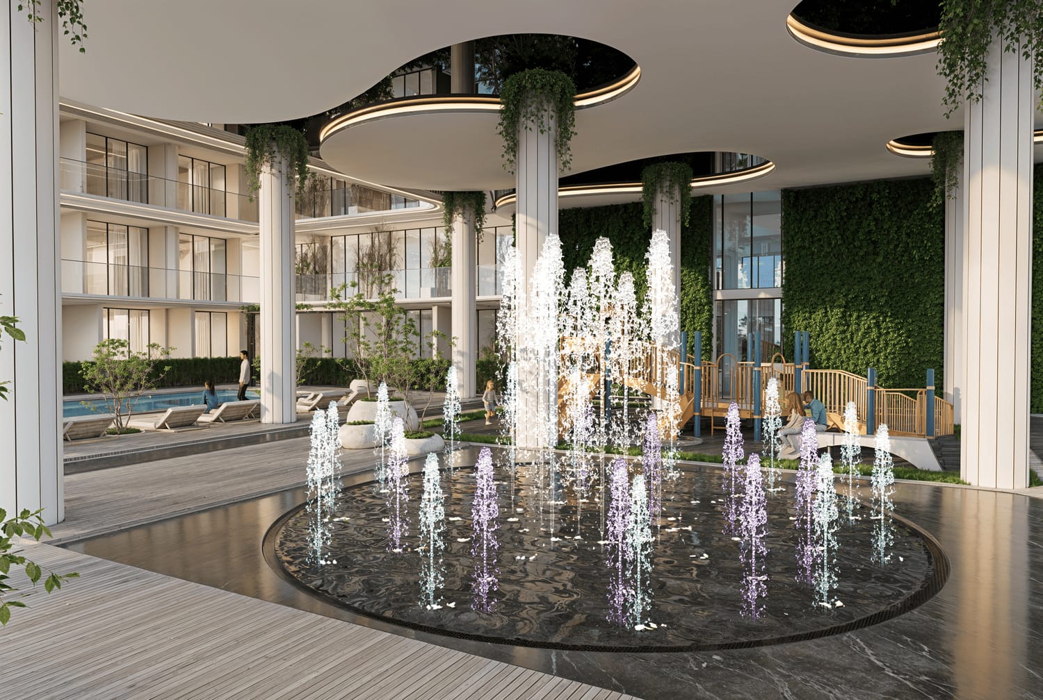 Lazord’s exceptional amenities complete the experience of luxury living. Residents enjoy a full range of wellness and leisure offerings, from indoor and outdoor gyms, jogging tracks, and saunas to a Jacuzzi-equipped pool deck, splash pools for kids, and a dedicated outdoor cinema. Landscaped gardens, family lounges, barbecue areas, and playful features like dancing fountains and billiards rooms create a vibrant, inclusive community — where every member of the family feels at home.