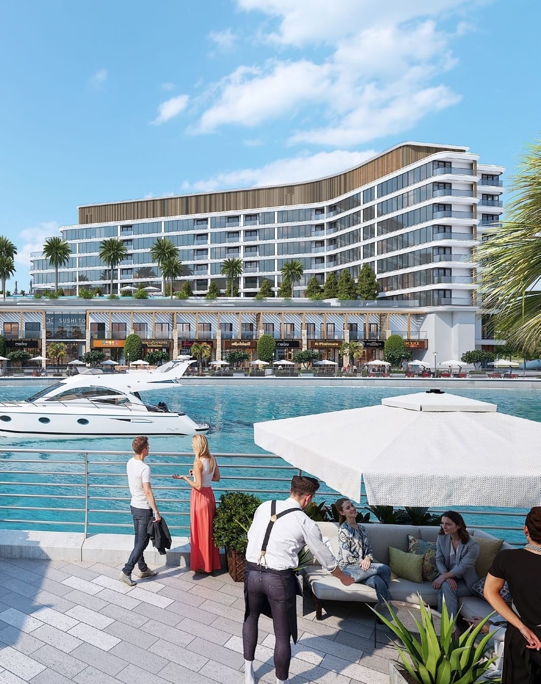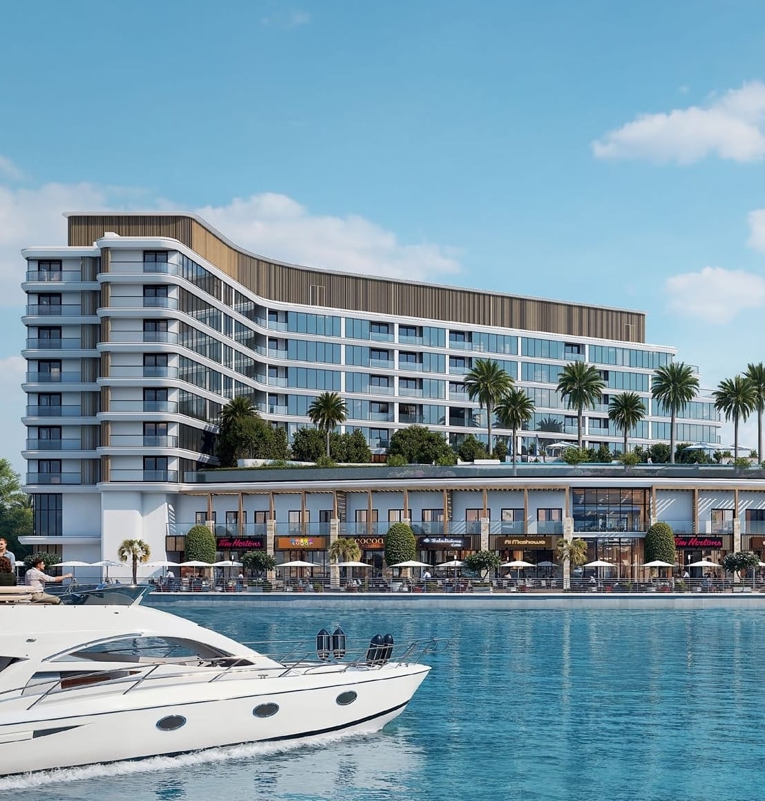 Residents enjoy an exclusive collection of premium amenities: elegant lounge areas, infinity pools with panoramic views, and state-of-the-art fitness spaces overlooking the marina. The vibrant waterfront promenade with boutiques, fine dining, and a private yacht club enhances the feeling of resort-inspired living.