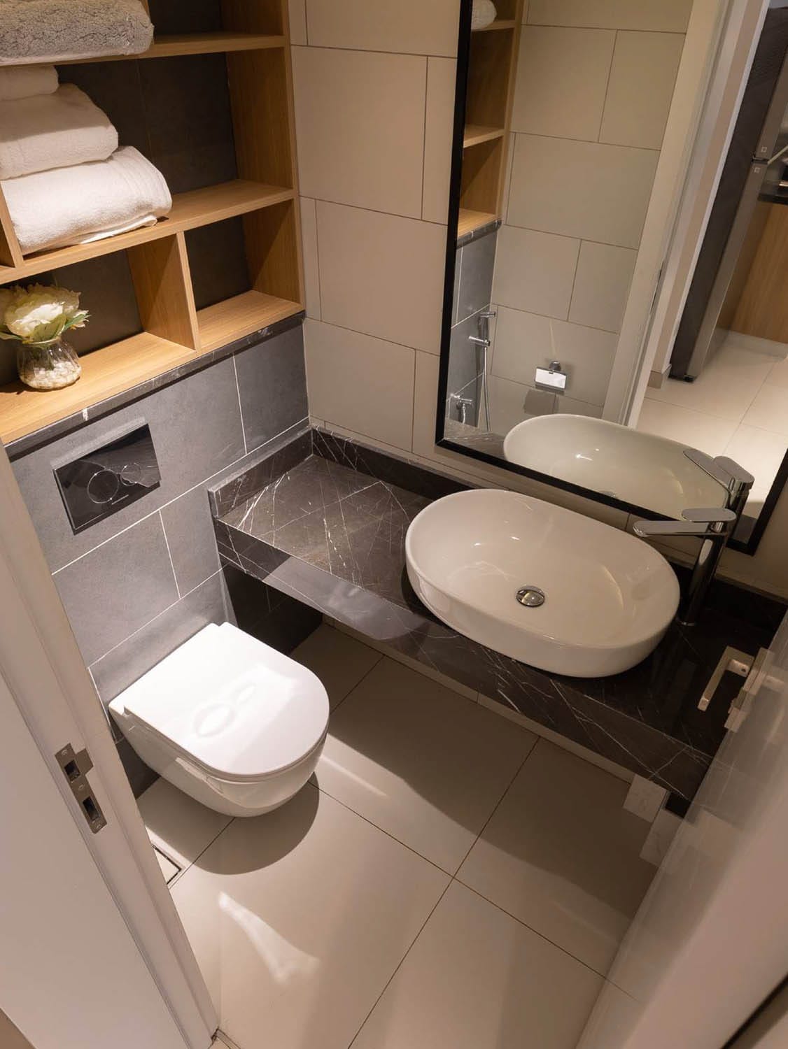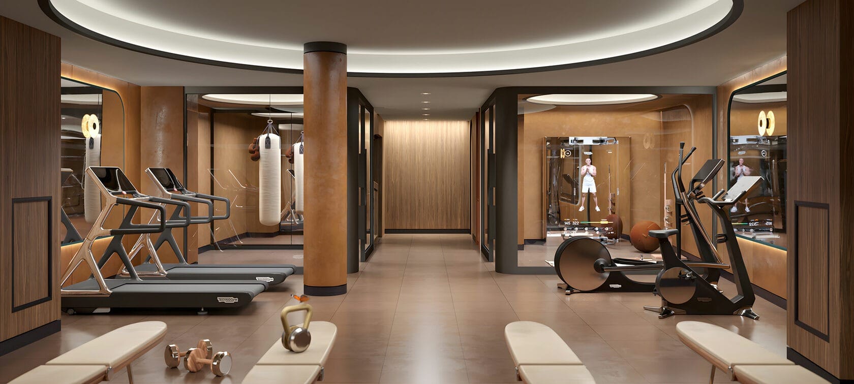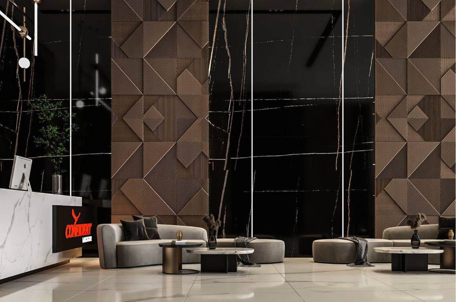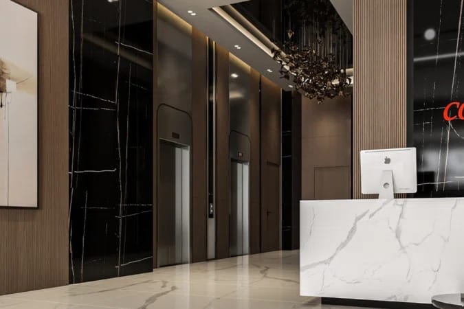 The lobby’s design exudes opulence with its generous use of rich wood paneling and the striking presence of black bamboo stone elements. The combination of these materials creates a harmonious blend of warmth and contemporary style. In every apartment at Confident Lancaster, attention to detail shines through in the woodwork. Meticulously crafted fixed furniture not only enhances the aesthetics but also provides functional elegance.