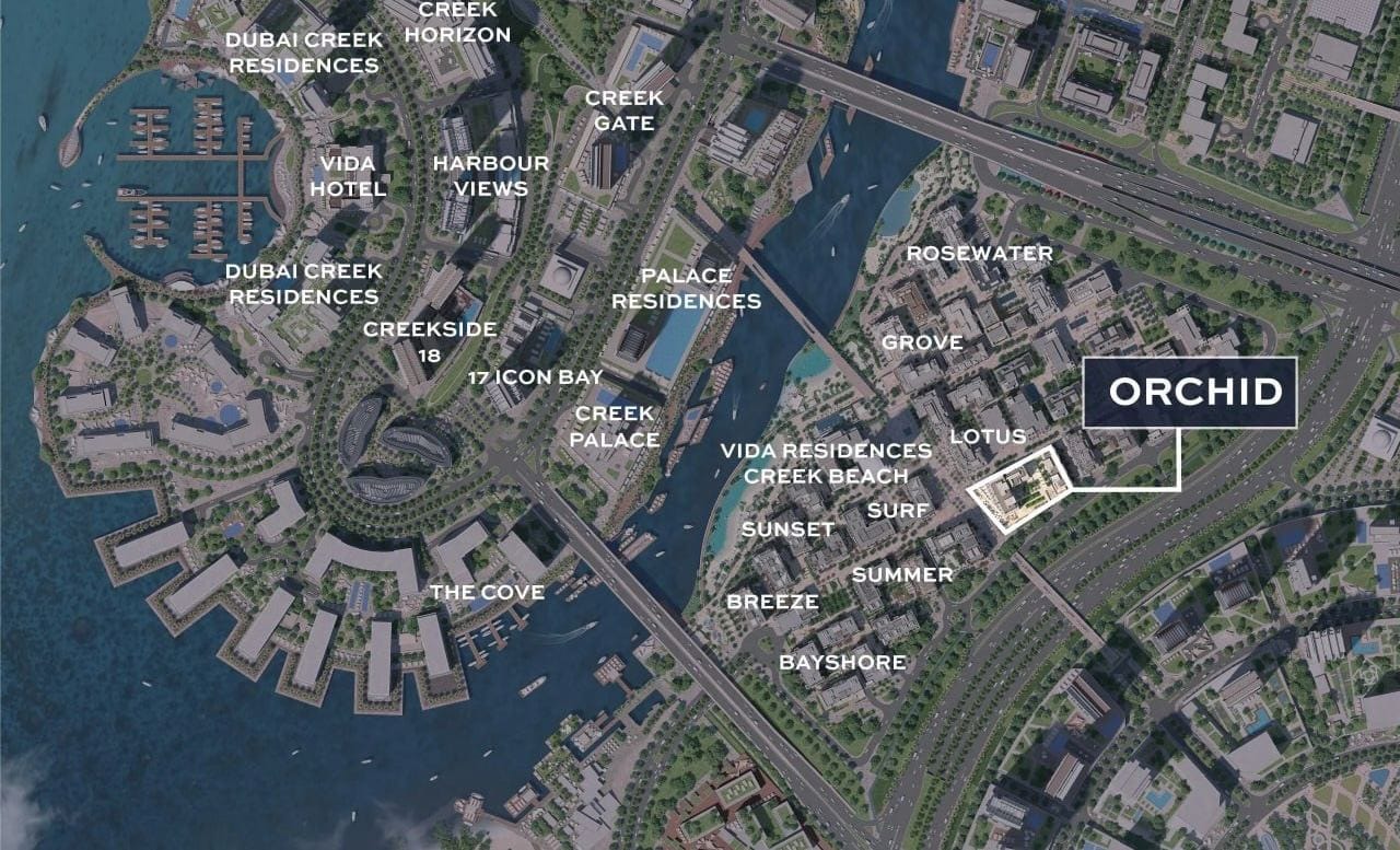 Creek Beach Orchid is considered a true urban oasis haven. The complex is just steps away from the picturesque Creek Beach and the world’s largest artificial lagoon. This unique atmosphere allows residents to enjoy the beach and water activities right next to their homes. Here, residents can indulge in a wealth of restaurants, shops, and entertainment venues that line the lively waterfront promenade. Public parks create the perfect setting for neighborly gatherings, outdoor business meetings, and casual conversations.