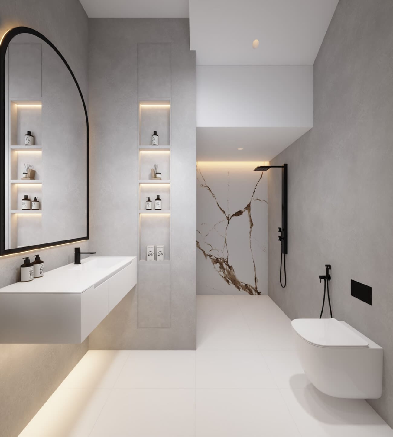 The bathroom on the second floor of townhouse offers sleek fixtures, premium fittings, and luxurious amenities, providing a serene sanctuary for relaxation and rejuvenation.