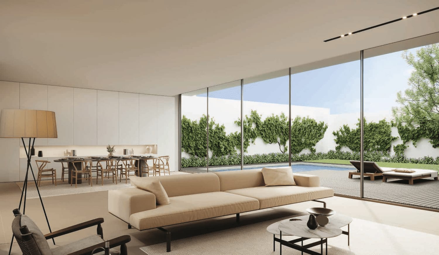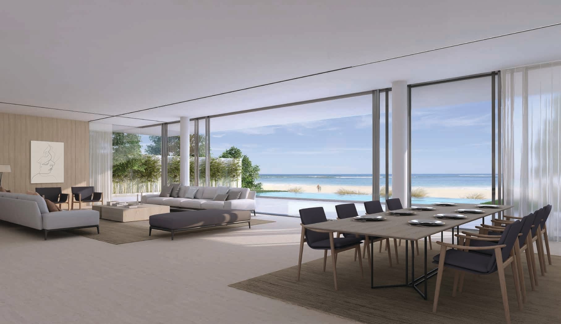 Discover the allure of 4-bedroom simplex villas, positioned on the secure, gated second and third rows of this prestigious community. These spacious villas are a true embodiment of ultra-modern design, seamlessly connecting indoor and outdoor spaces to create a harmonious living experience. With spectacular sea vistas, each villa is surrounded by ample gardens, a private pool, and a secluded landscaped courtyard, creating a refreshing oasis of green tranquility.