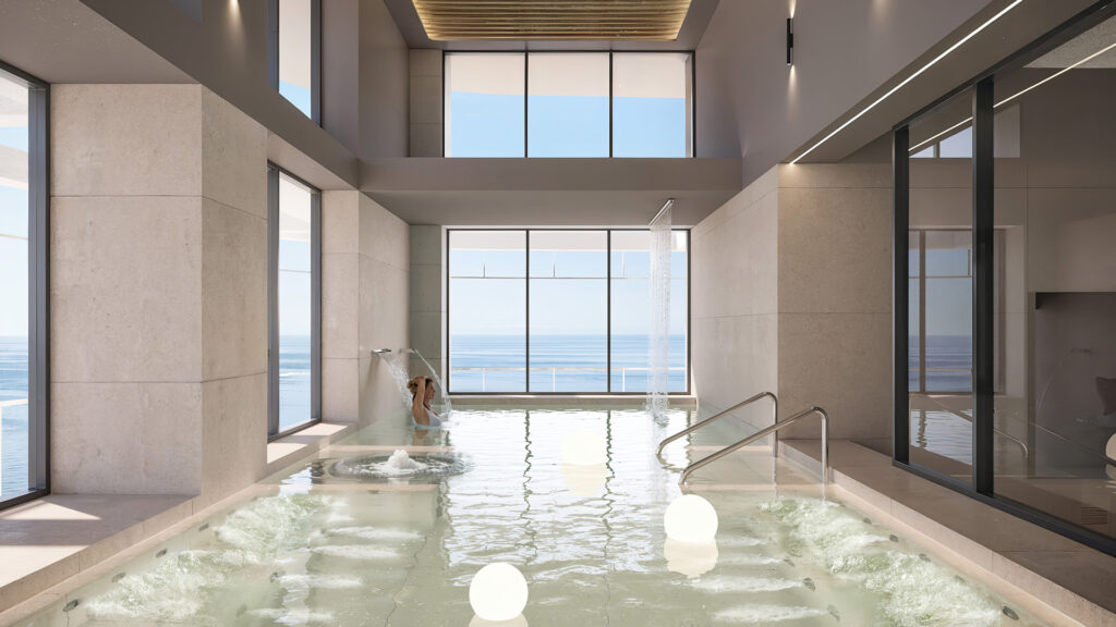 Інфраструктура (13 000 м2): ▫️тренажерний зал, ▫️кінотеатр, ▫️басейни з підігрівом, ▫️спортивна зона, ▫️скай-бар з оглядовим майданчиком на даху.